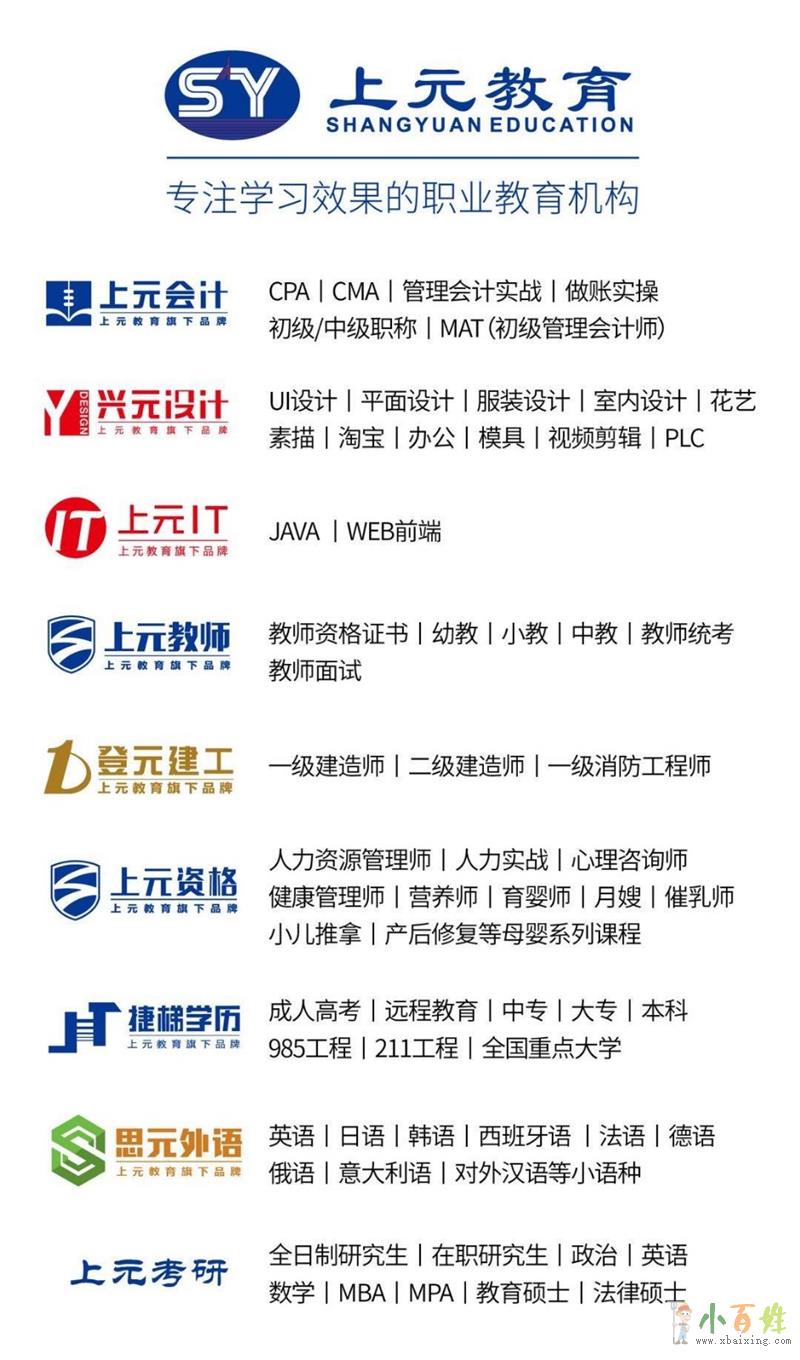【开设课程】 资格认证、公务员考试、会计从业、人力资源管理师、执业医师、导游、文秘、报关员、司法考试、翻译资格考试、建筑地产类、监理师、资产评估师、心理咨询师、教师、月嫂、厨师、营养师、保健按摩、美容...